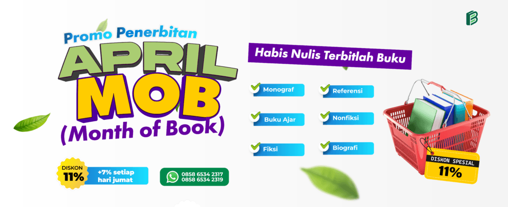 Selama bulan April 2025, Penerbit Bintang Semesta Media (BSM) menghadirkan promo spesial APRIL MOB (Month of Book), dengan diskon spesial 11% untuk semua layanan penerbitan. Dengan tagline “Habis Nulis, Terbitlah Buku”, Penerbit BSM siap membantu Anda menerbitkan buku dalam berbagai kategori, mulai dari: